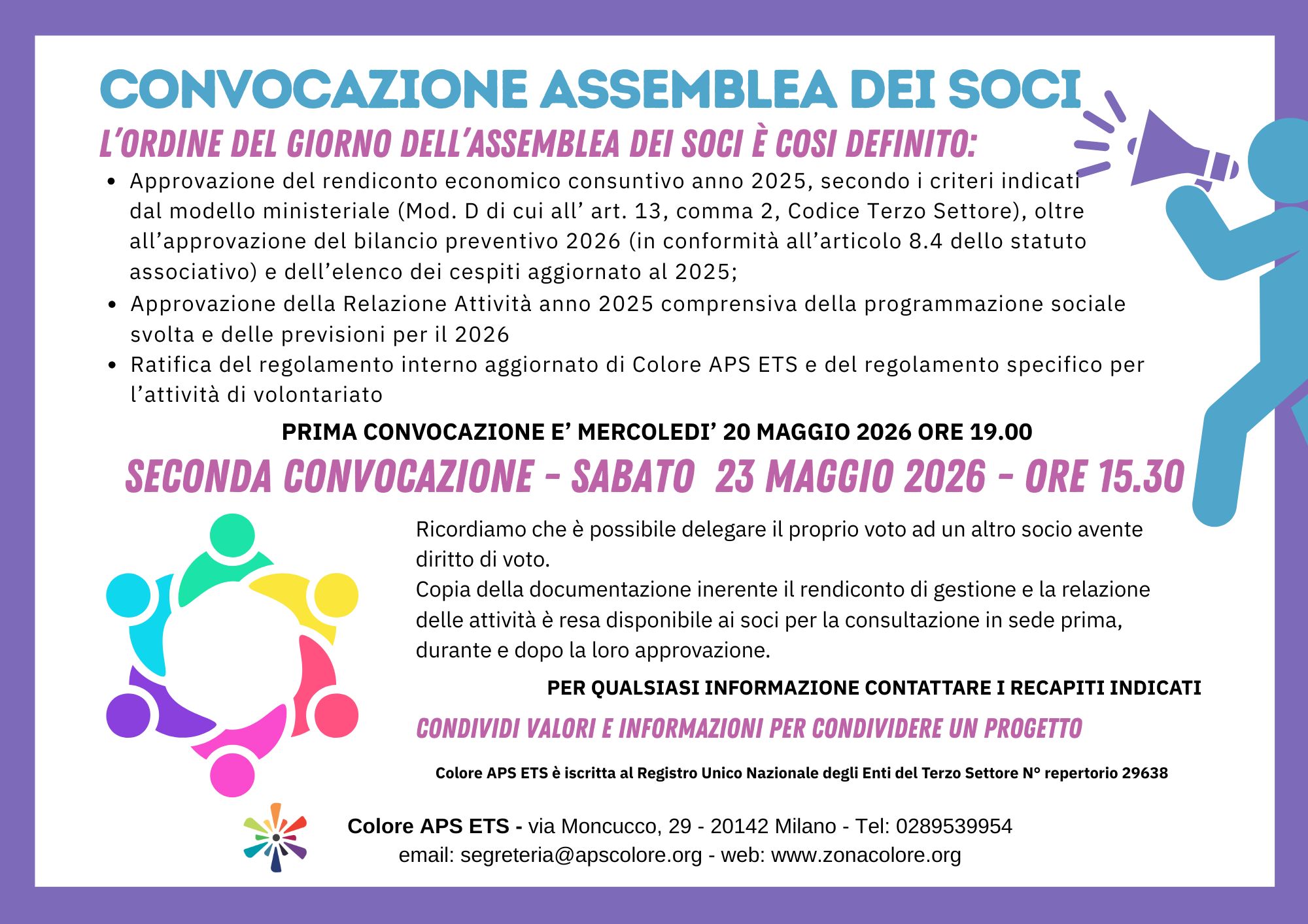 SECONDA CONVOCAZIONE: SABATO 23 MAGGIO 2026 ORE 15.30
